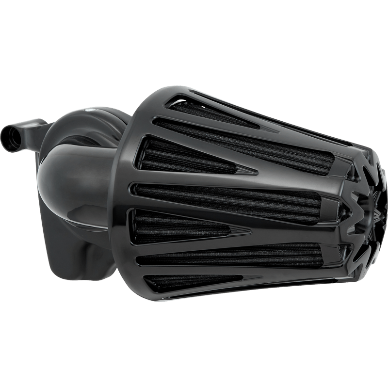 The CrossFire Monster Sucker is a 90° performance air cleaner that features a massive forward facing filter design