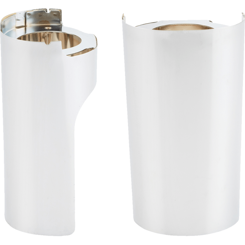 Smooth Steel Fat Fork boots feature specially notched inside surfaces to allow the use of fat / wide front wheels on FLT front ends