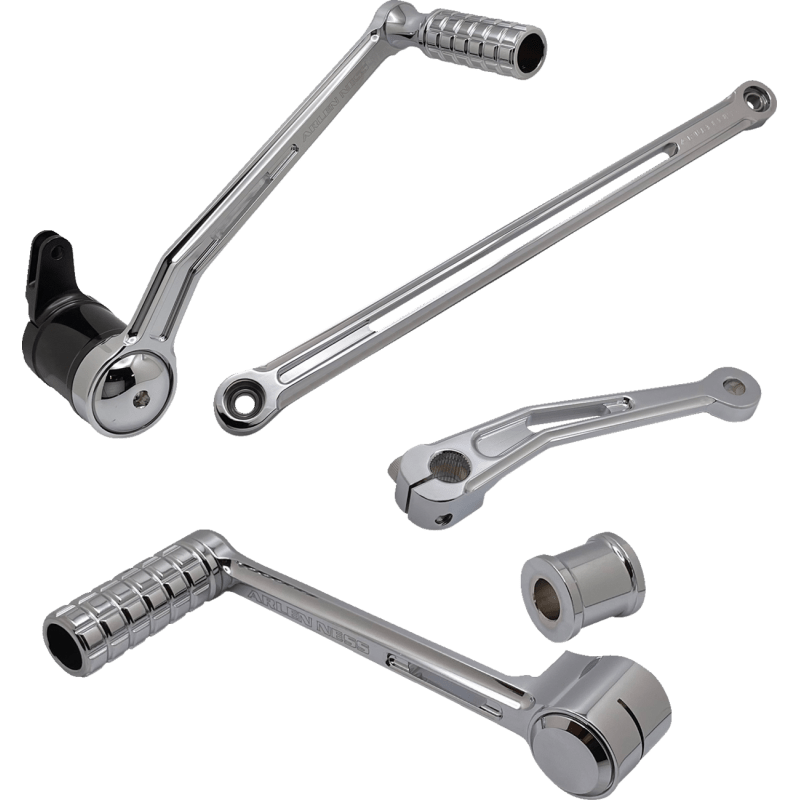 Kit includes brake arm, shift rod, inner shift arm, & either a solo or heel/toe shifter with pegs