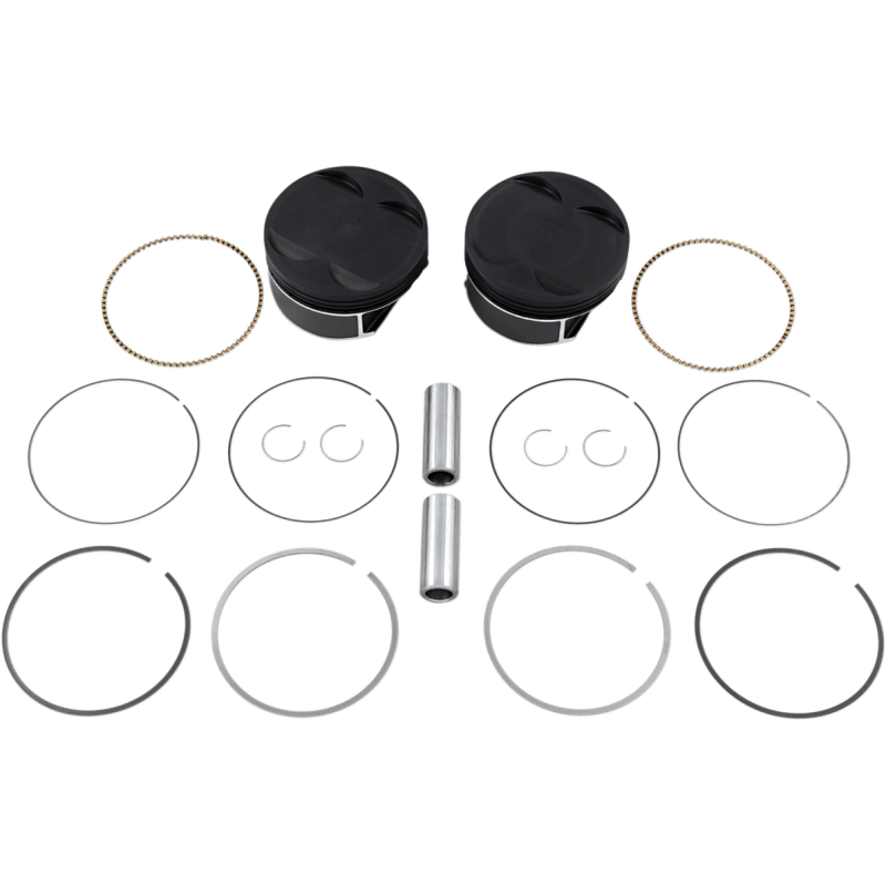 Kit includes two pistons, rings, piston pins and circlips