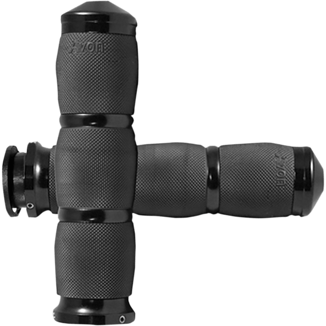 Feature billet end caps and rings with ergonomic AVON seamless rubber grip technology