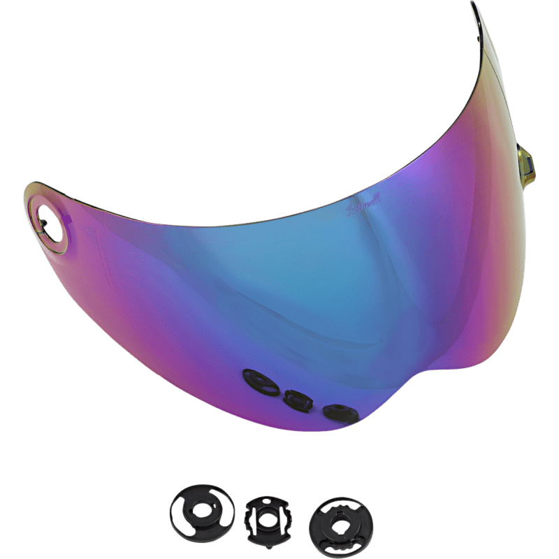 Nickel-plated stainless-steel snap on shield fastens securely to snap on helmet shell