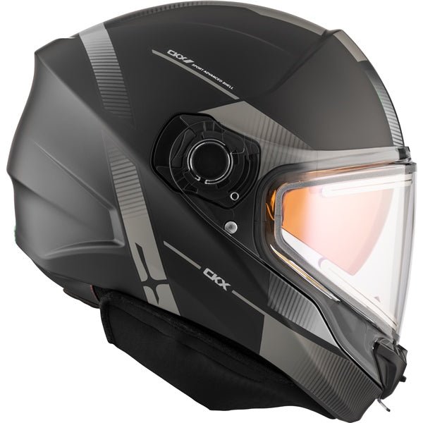 Designed for the winter and trail riding, the CKX Contact helmet is both minimalist and functional in design. Featuring an electric face shield with a lightweight and sleek construction, it stands apart for its ease of access and ease of use. No adjustment is required. The heated and oversized visor includes a built-in strain relief and a power indicator visible at all time. In addition to its broad field of vision, the shield opens easily and frees the whole face to accommodate drinking and talking. With the Contact, you will enjoy CKX signature comfort with 2 shell sizes, 4 EPS and sizes from XS to 3XL. Return to the essential, without adjustment and compromise with the CKX Contact electric helmet.