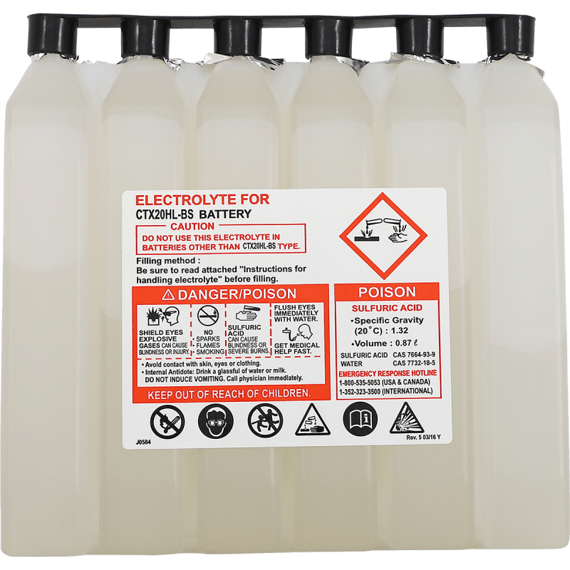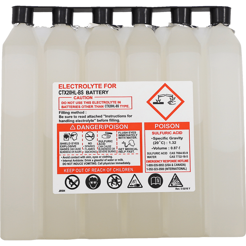 Special-absorbed glass-mat battery eliminates water loss, permitting the battery to be permanently sealed once it is filled with acid; Acid Pack included