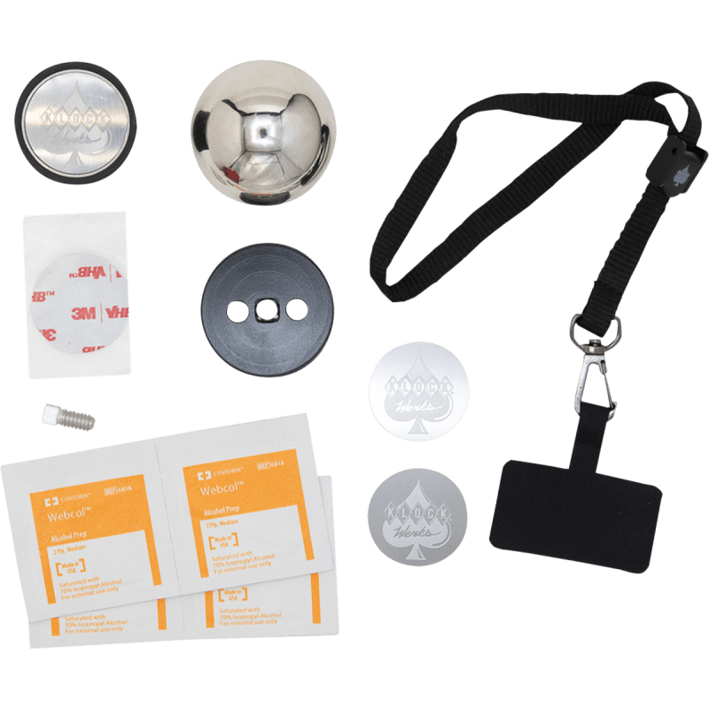 Includes semisphere mount, adhesive patch, two iOadapt steel disks and one magnetic black iOcore